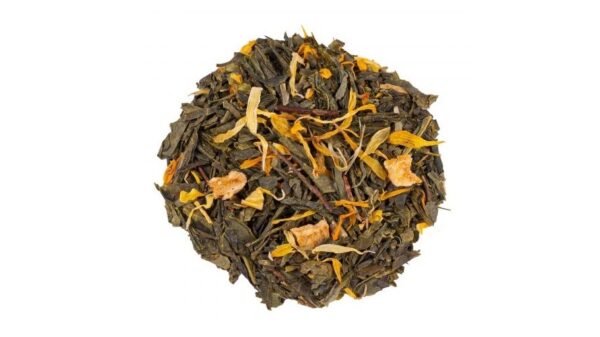 Ingredients: Green Tea China Sencha*, natural peach flavouring, marigold*, peach* (2%). *Certified organic